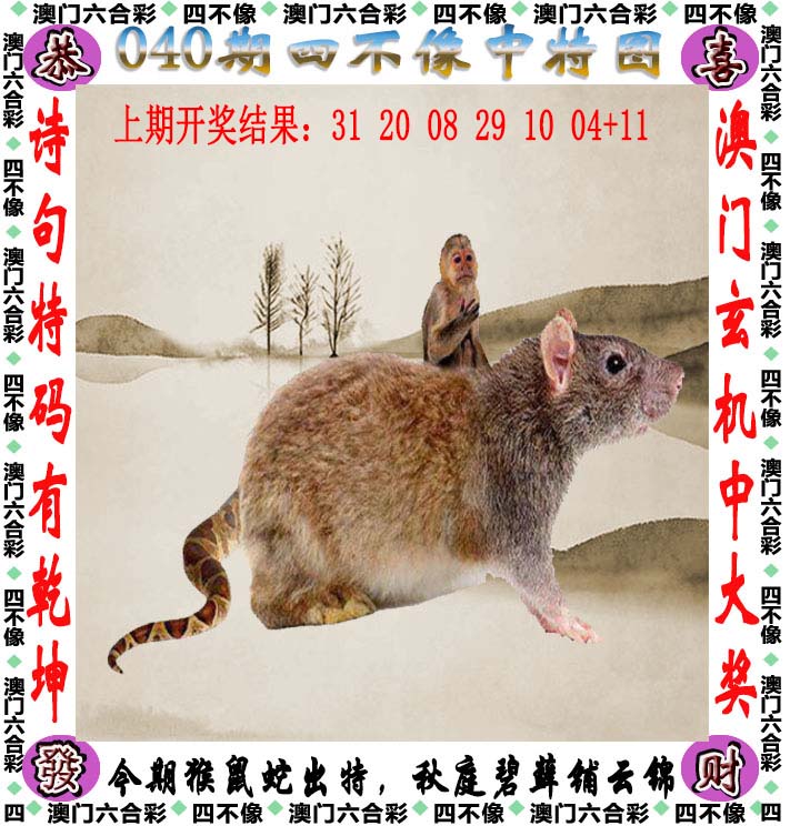 | 040期④肖 | 虎蛇鼠猴 | 开?00中 |